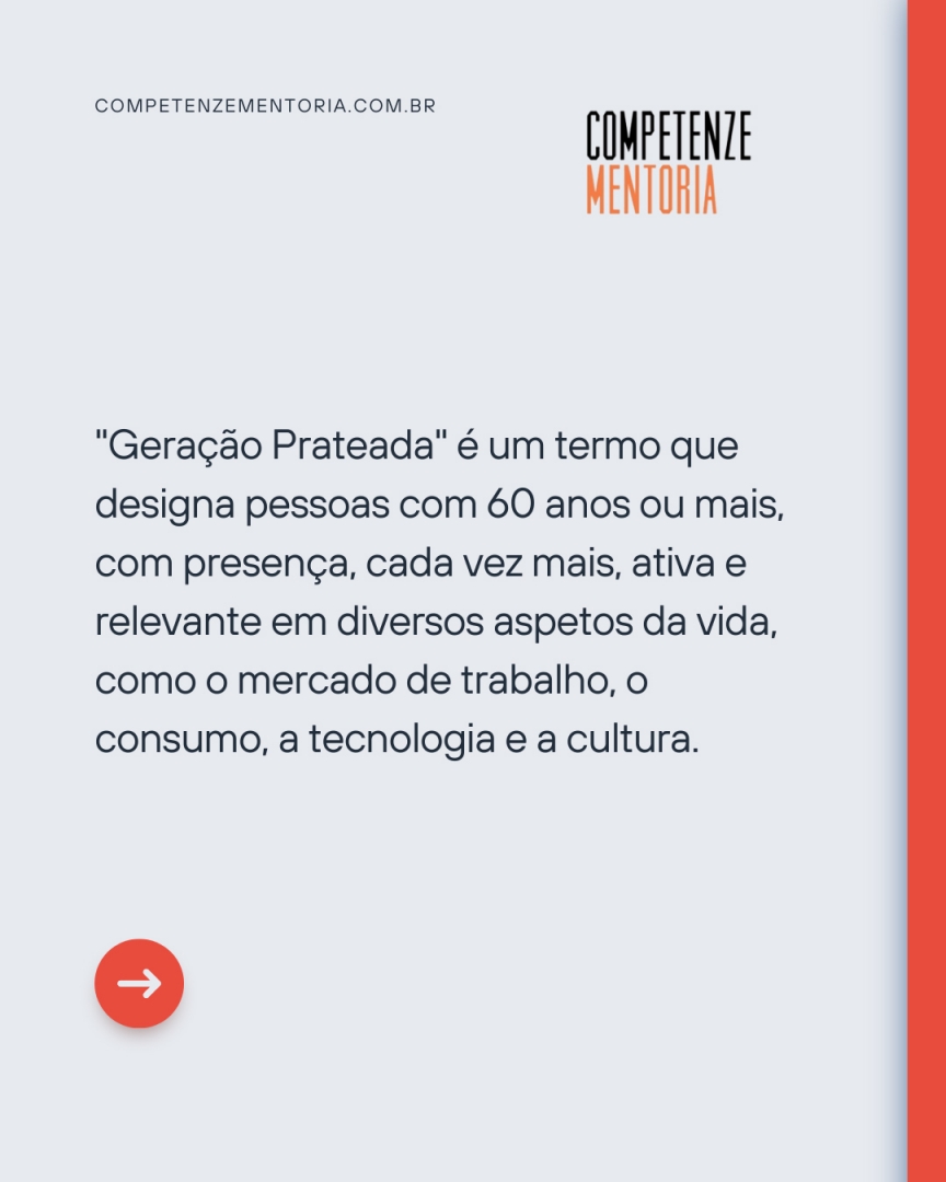 "Geração Prateada" é um termo que designa pessoas com 60 anos ou mais, com presença, cada vez mais, ativa e relevante em diversos aspetos da vida, como o mercado de trabalho, o consumo, a tecnologia e a cultura.